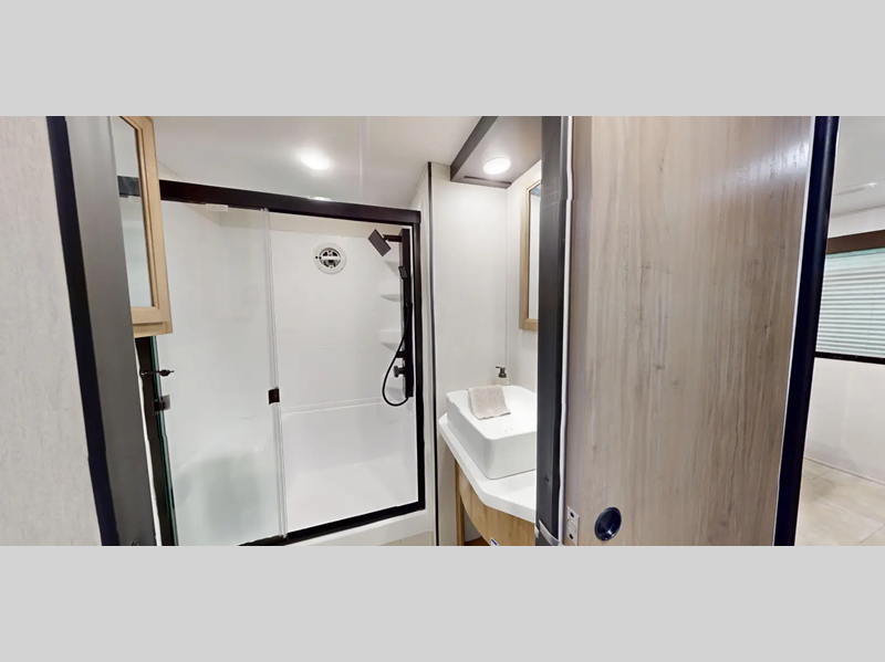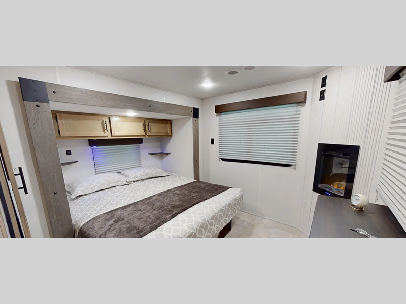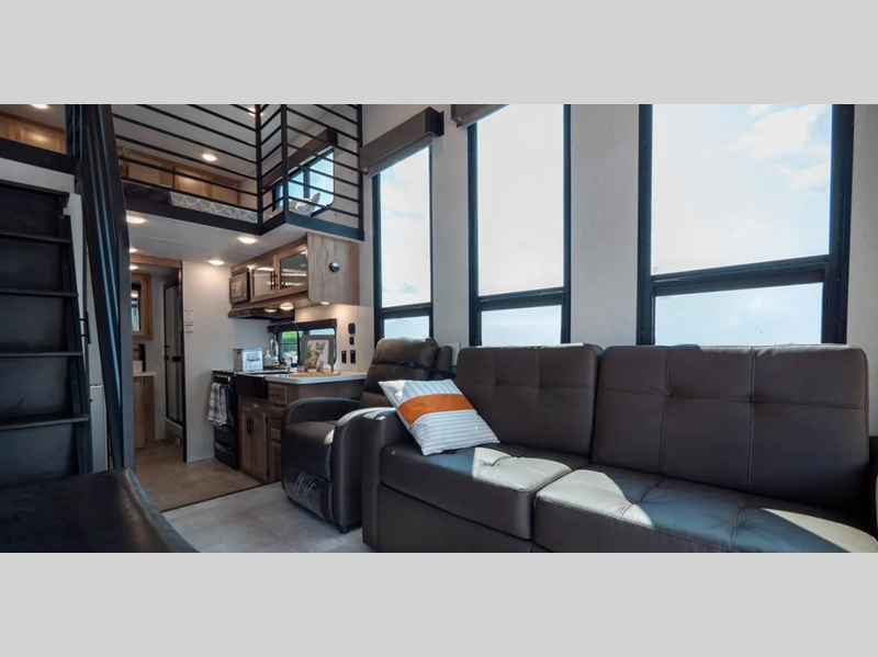 Sleeps 8 Length 35 ft 8 in Ext Width 8 ft Ext Height 13 ft 6 in Hitch Weight 1025 lbs GVWR 11225 lbs Dry Weight 8824 lbs Cargo Capacity 2401 lbs Fresh Water Capacity 40 gals Grey Water Capacity 40 gals Black Water Capacity 40 gals Available Beds King, Queen Refrigerator Size 18 cu ft Number of Awnings 1 Axle Count 2 Washer/Dryer Available Yes Shower Type Shower w/Seat Similar Floorplans