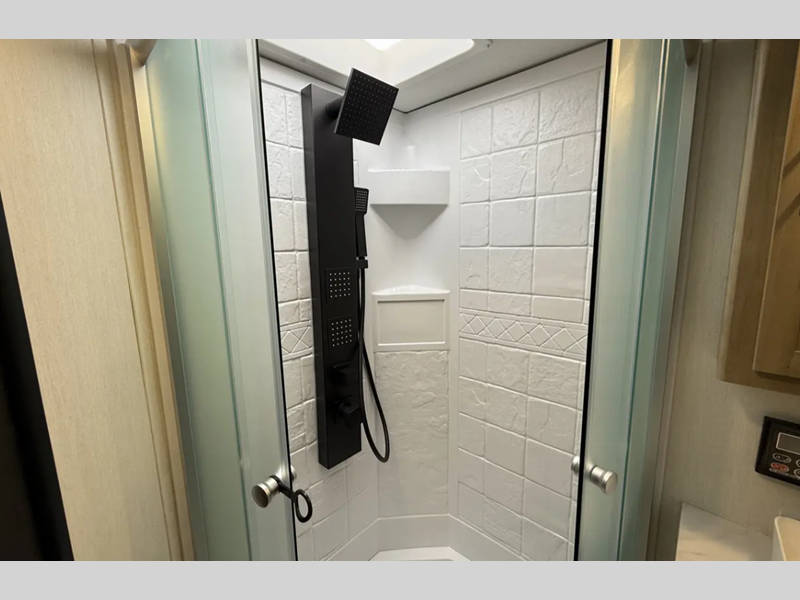 Sleeps 7 Slides 1 Length 36 ft 8 in Ext Width 8 ft Ext Height 10 ft 8 in Hitch Weight 1022 lbs GVWR 8022 lbs Dry Weight 6835 lbs Cargo Capacity 1187 lbs Fresh Water Capacity 40 gals Grey Water Capacity 38 gals Black Water Capacity 38 gals Available Beds Queen, RV King Number of Awnings 1 Awning Info 15' Axle Count 2 Shower Type Neo-Angled Similar Floorplans